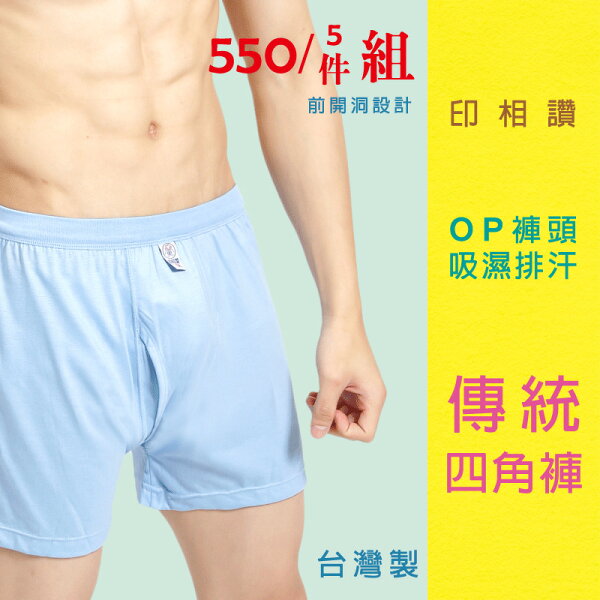 出自:線上購物分享 - 214/免運/男性平口褲/吸濕排汗傳統型男四角褲/五件組/【印相讚】男性內褲/男內褲/男性四角褲/男平口褲/孝親款/台灣製/OP褲頭/前開洞設計